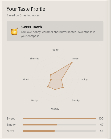 Personal radar chart across 8 flavour dimensions built from your ratings