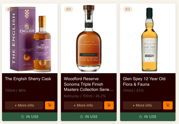 Rate bottles. Tag flavours. Cabinet builds a personal taste profile and recommends bottles you're likely to love.
